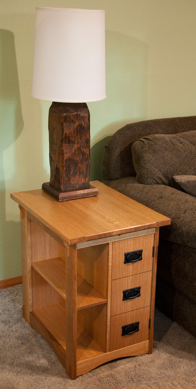 This table was inspired from an item in a catalog. The overall proportions were just about right. The main change was to adapt the height of the table to accomodate an existing sofa.